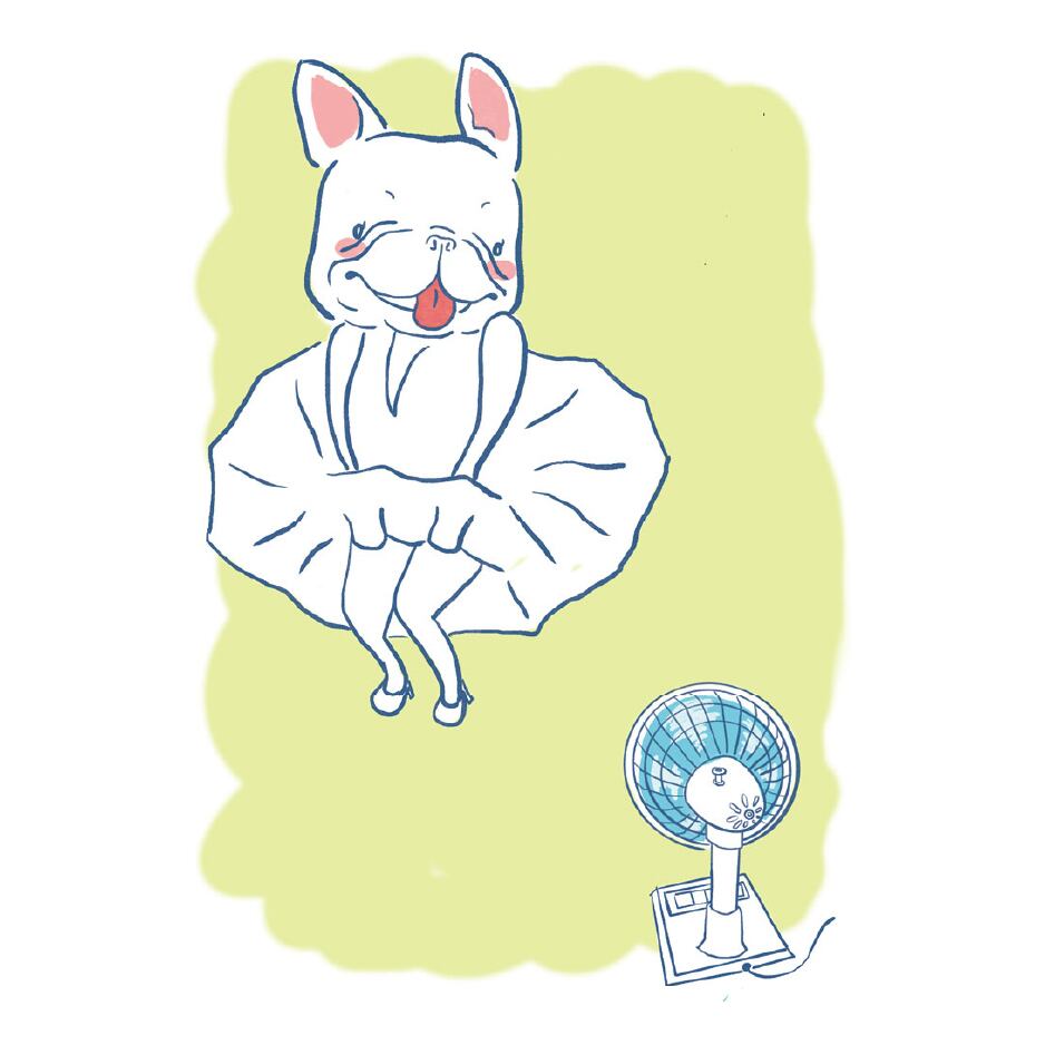 扇風機を使って誰かのモノマネしているフレブルのイラスト半そでスウエットです♪