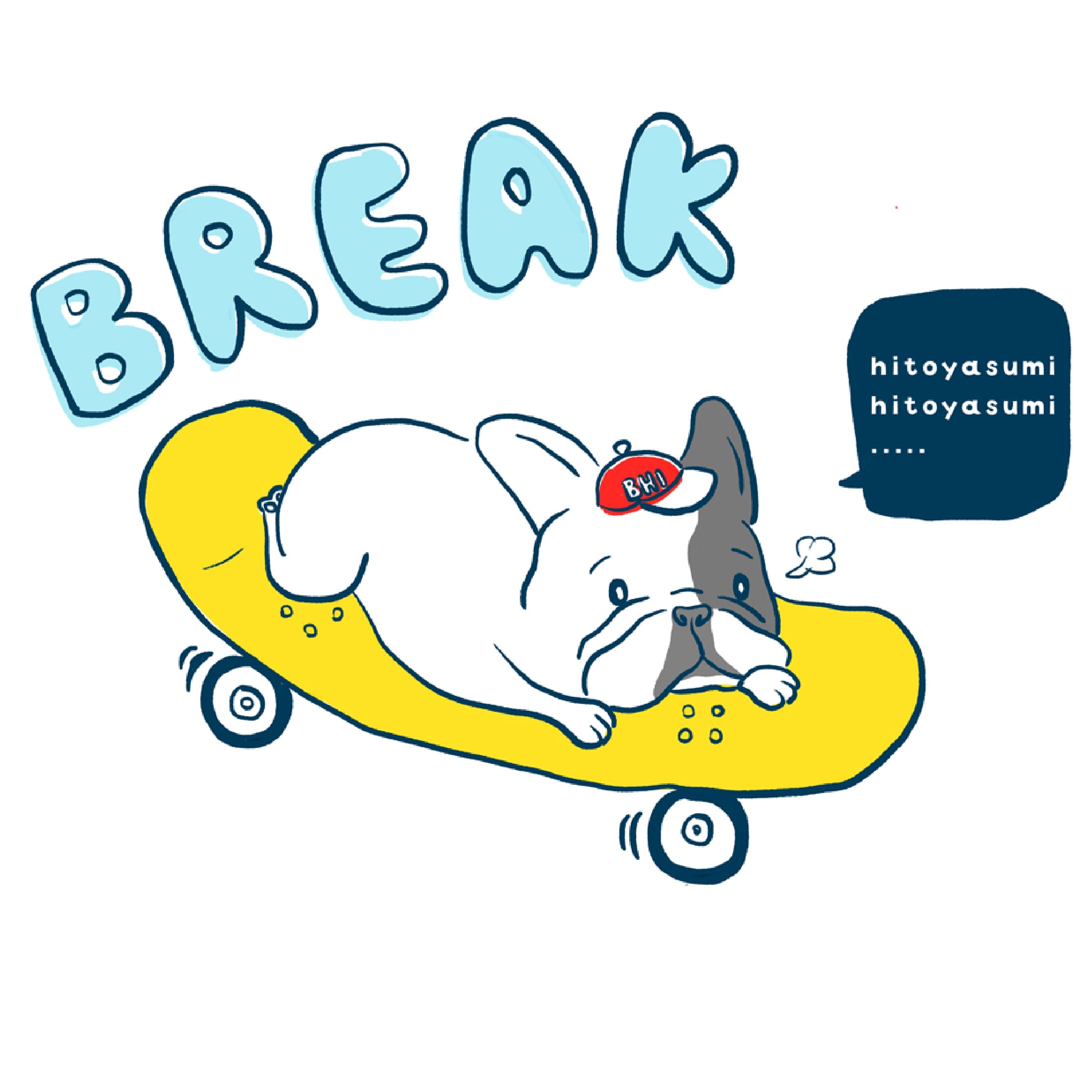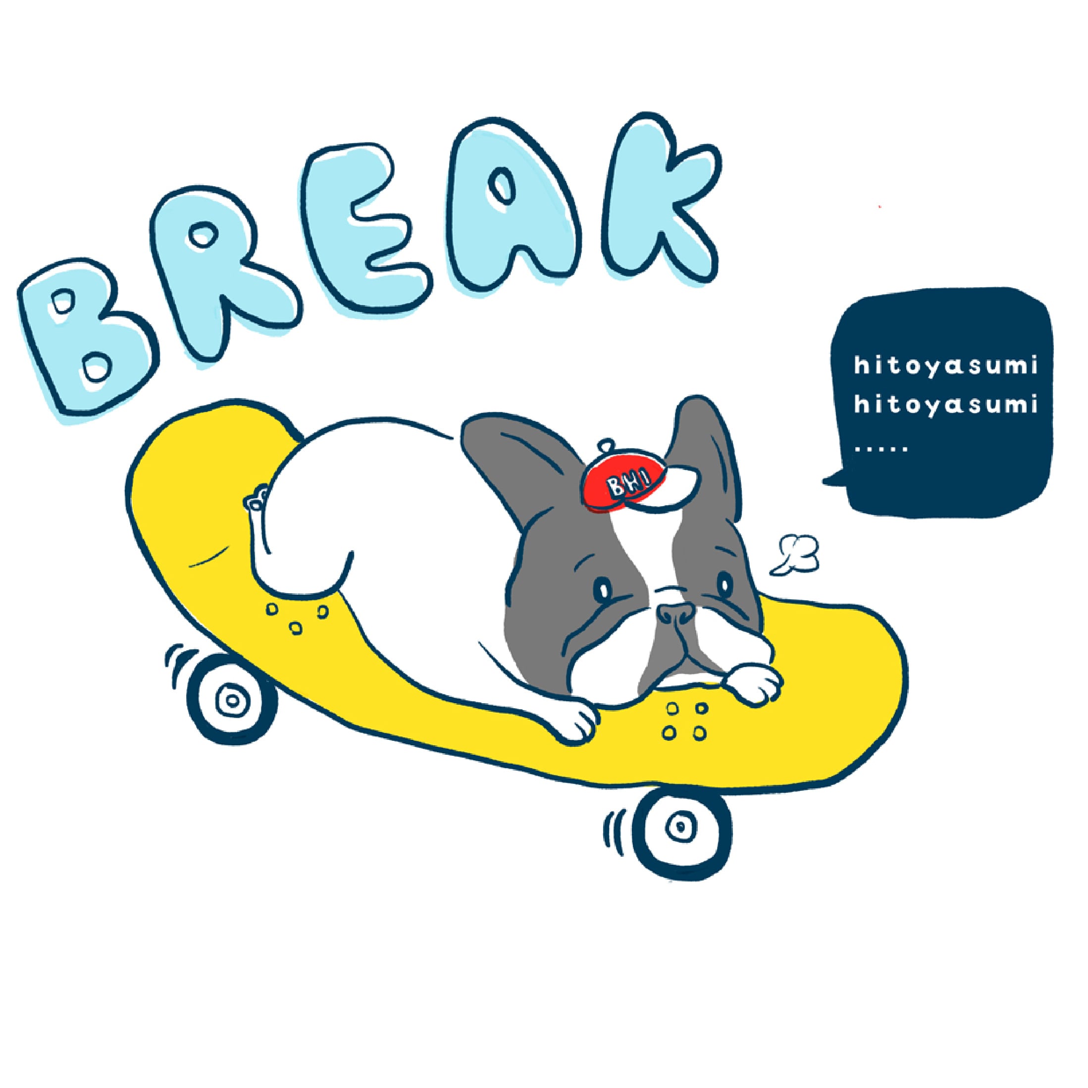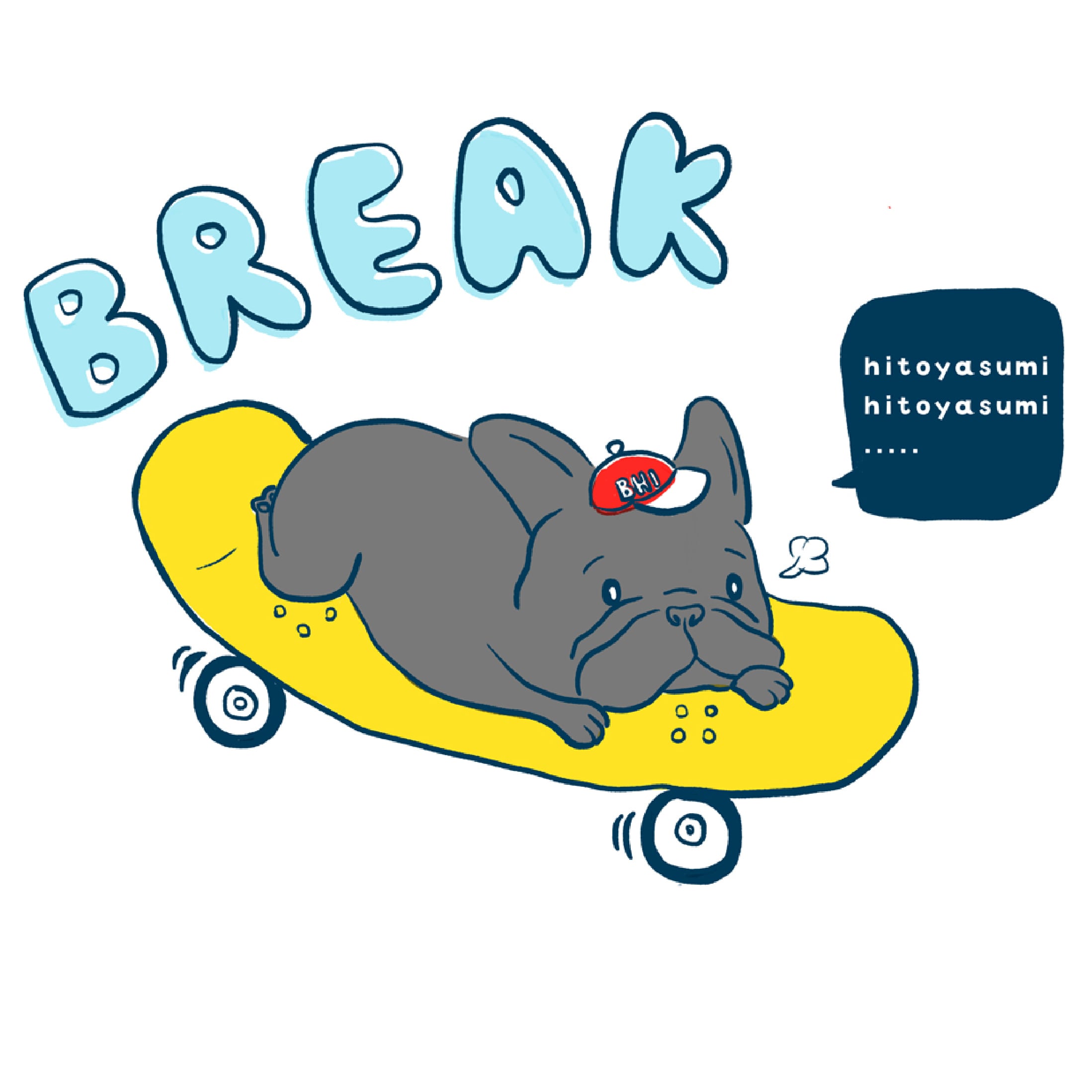 フレブルがスケボーの上で休憩しているイラストが入った黒Tシャツです♪