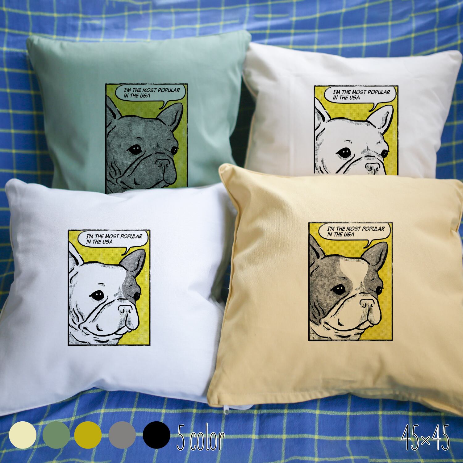 【メッセージ】 フレブル アメコミ風クッションカバー メッセージ イニシャル フレンチブルドッグ 犬 45×45