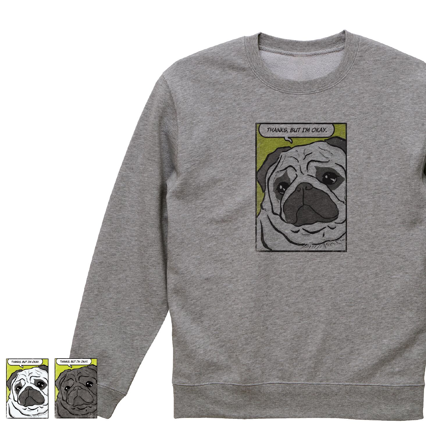 アメコミ風パグのイラストが入ったクルーネックスウエットです♪