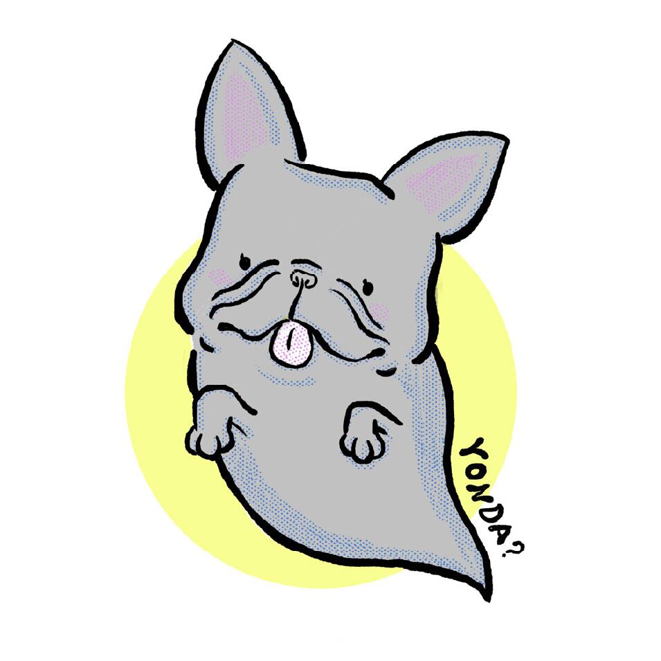 後ろを振り返ると首をかしげてこっちを見てるおばけフレブル