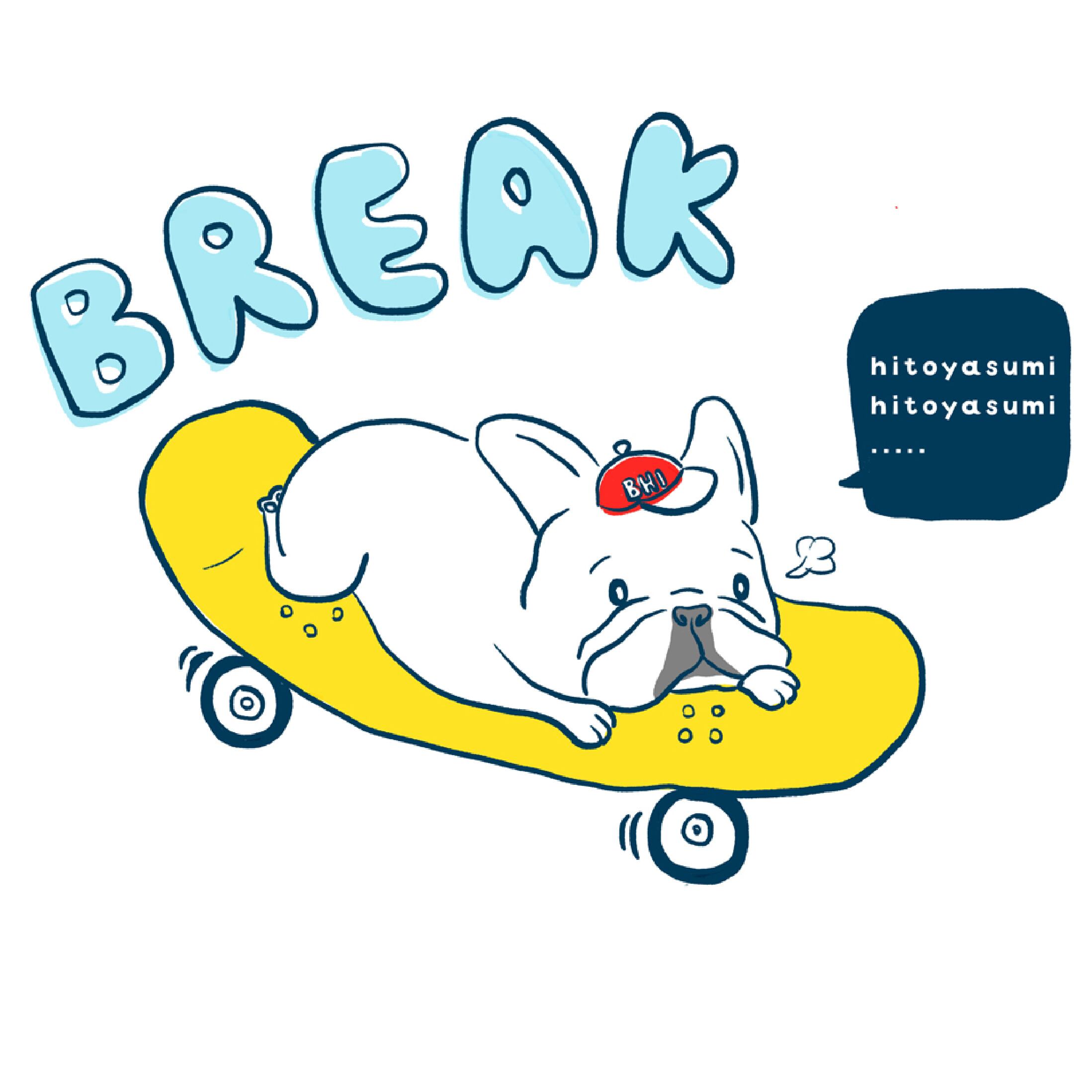 フレブルがスケボーの上で休憩しているイラストが入ったパーカーです♪