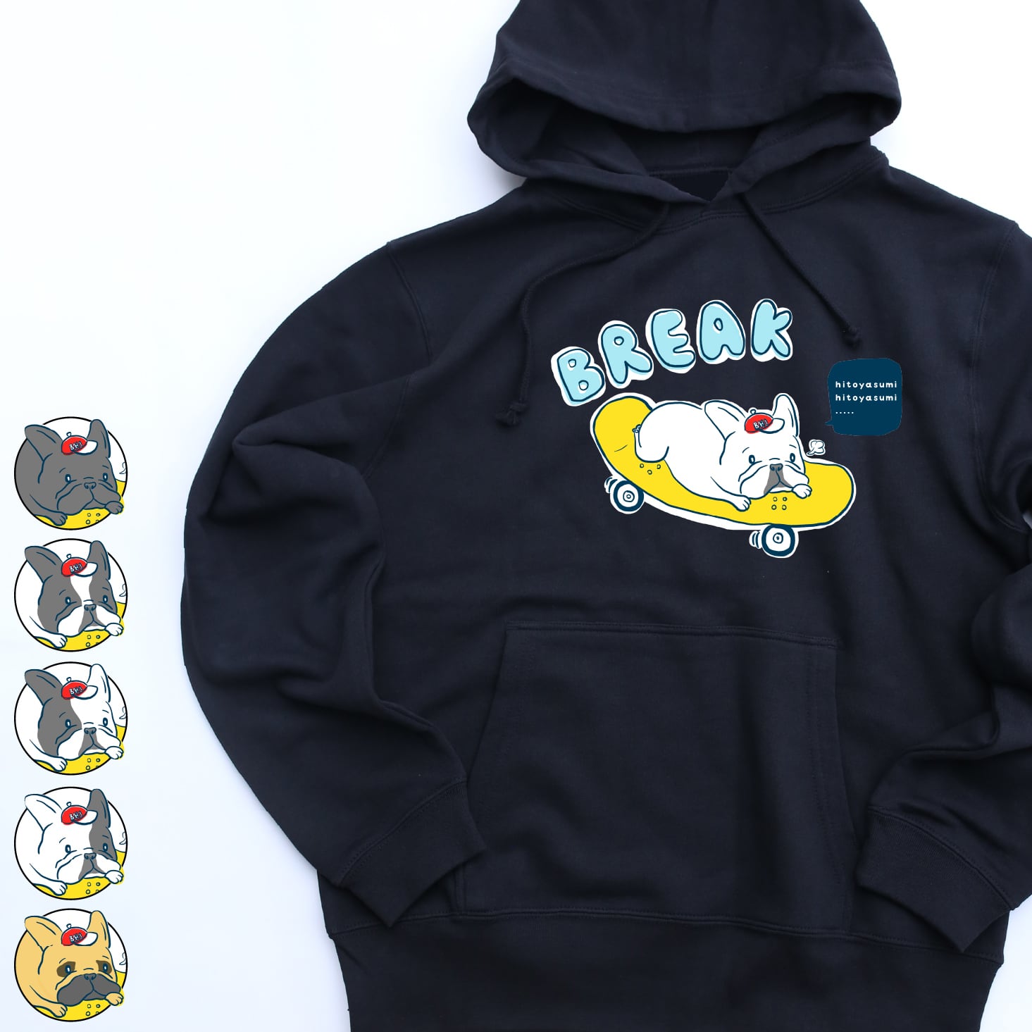 【名前入り】スケボーフレブル BREAK ブラックパーカー 親子コーデ フレンチブルドッグ