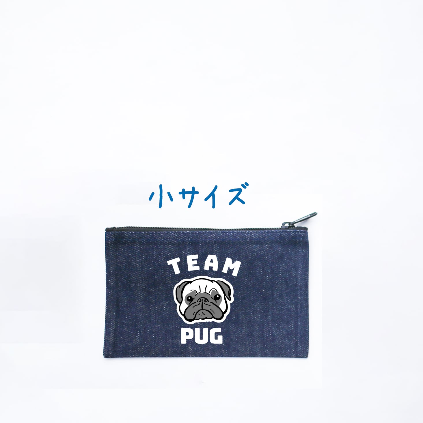 【カスタマイズ】TEAMパグ デニムポーチ 名前入れ メッセージ 化粧ポーチ 小物入れ プレゼント ふでばこ
