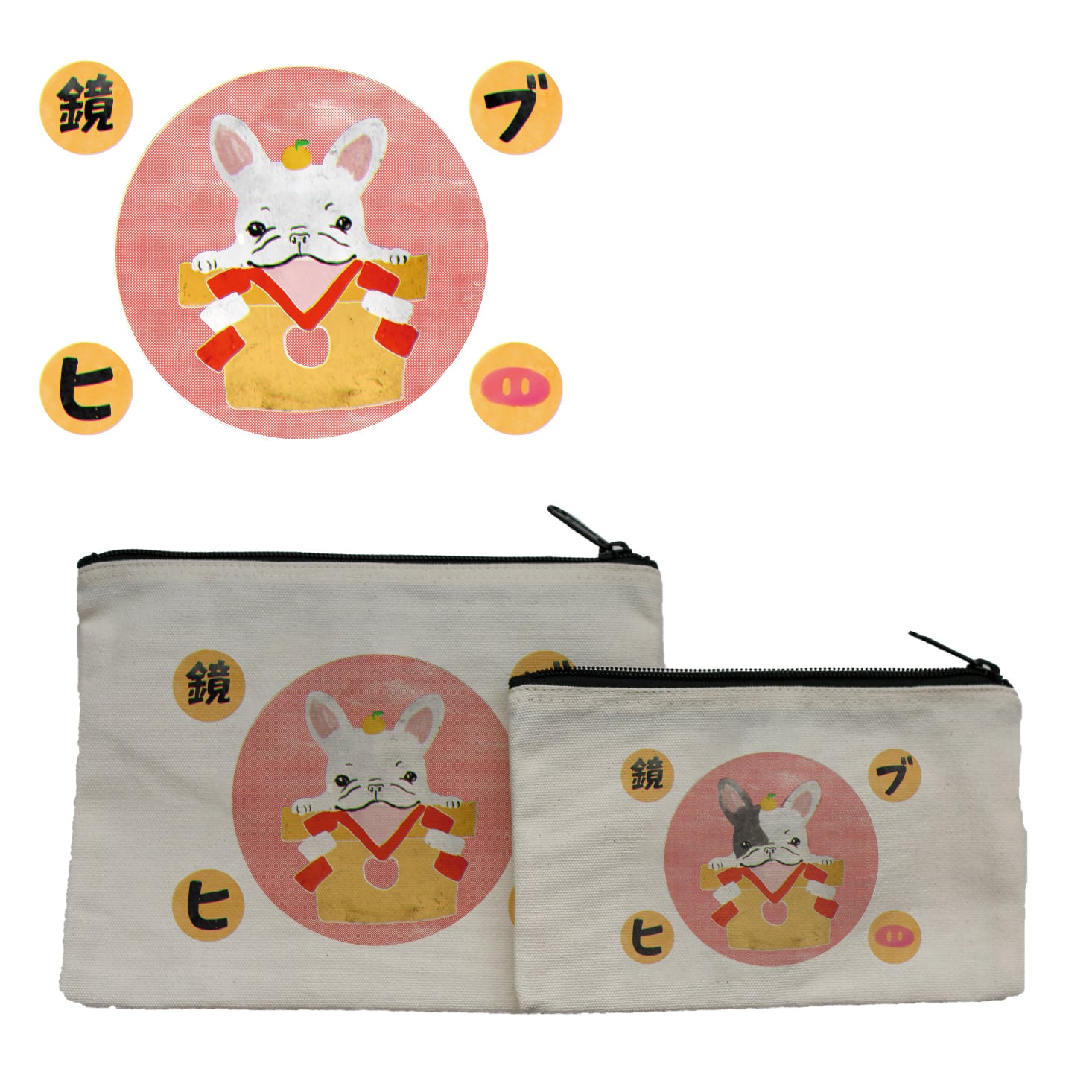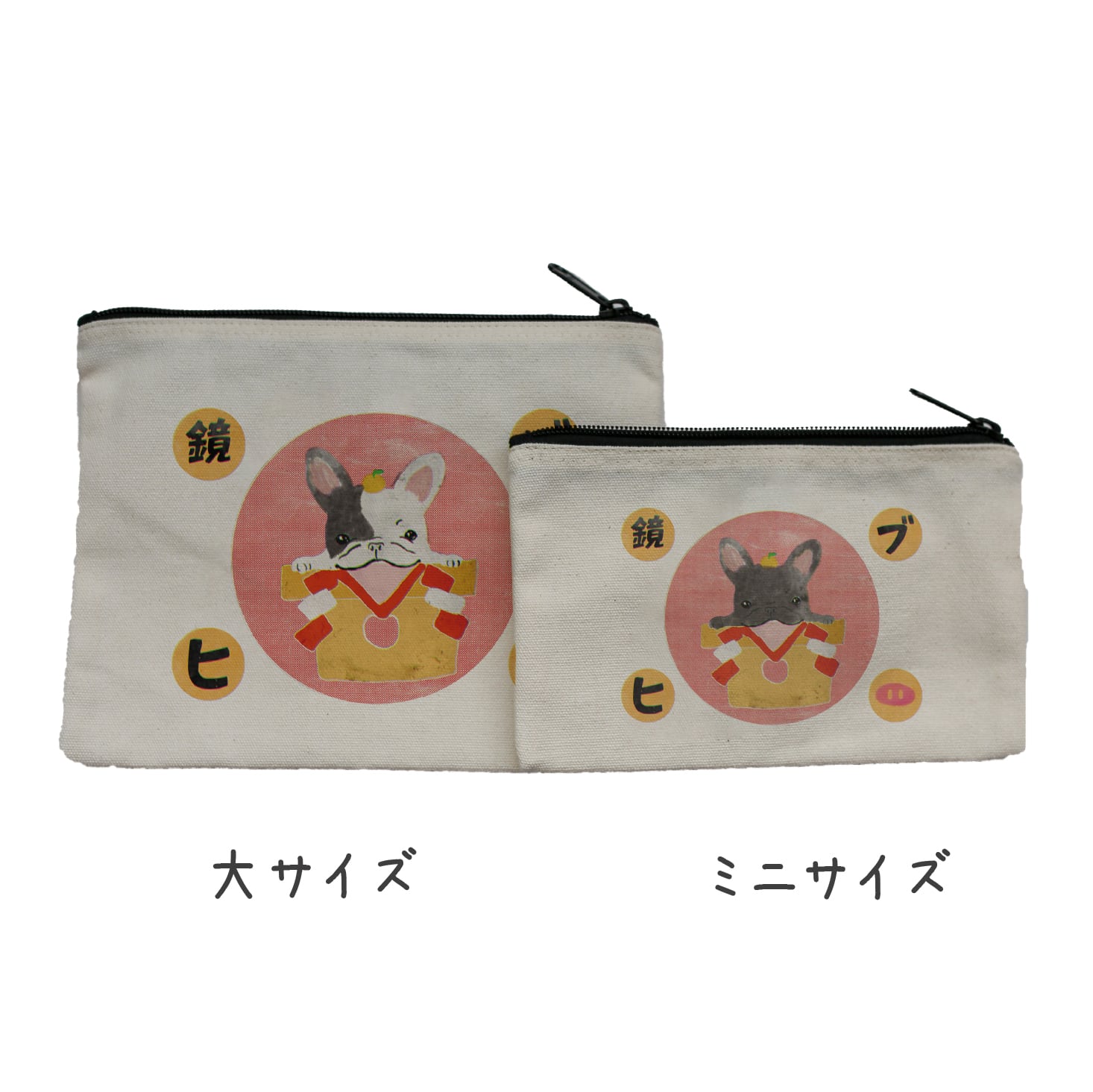 鏡ブヒ フレブル ポーチ 化粧ポーチ 小物入れ プレゼント 鏡餅 鏡もち お年玉 フレンチブルドッグ
