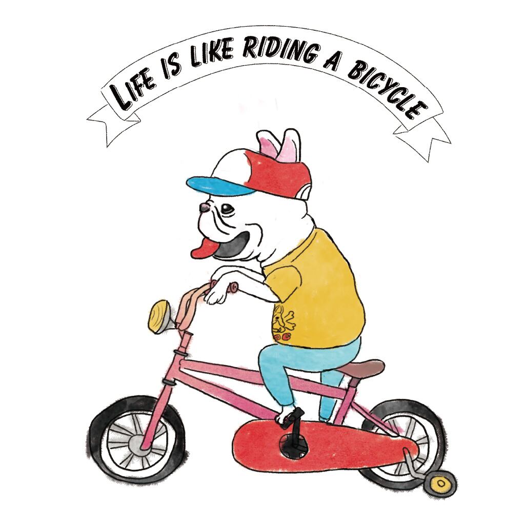フレンチブルドッグが家族で自転車に乗っているパーカーです♪