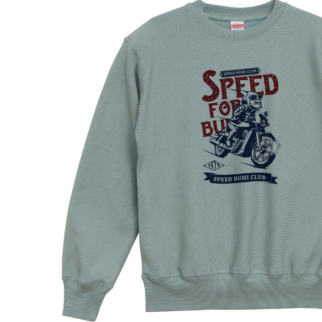 【名前入り】フレブルバイク 裏起毛クルーネック スウェット スモーキーグリーン お出かけ フレンチブルドッグ バイク