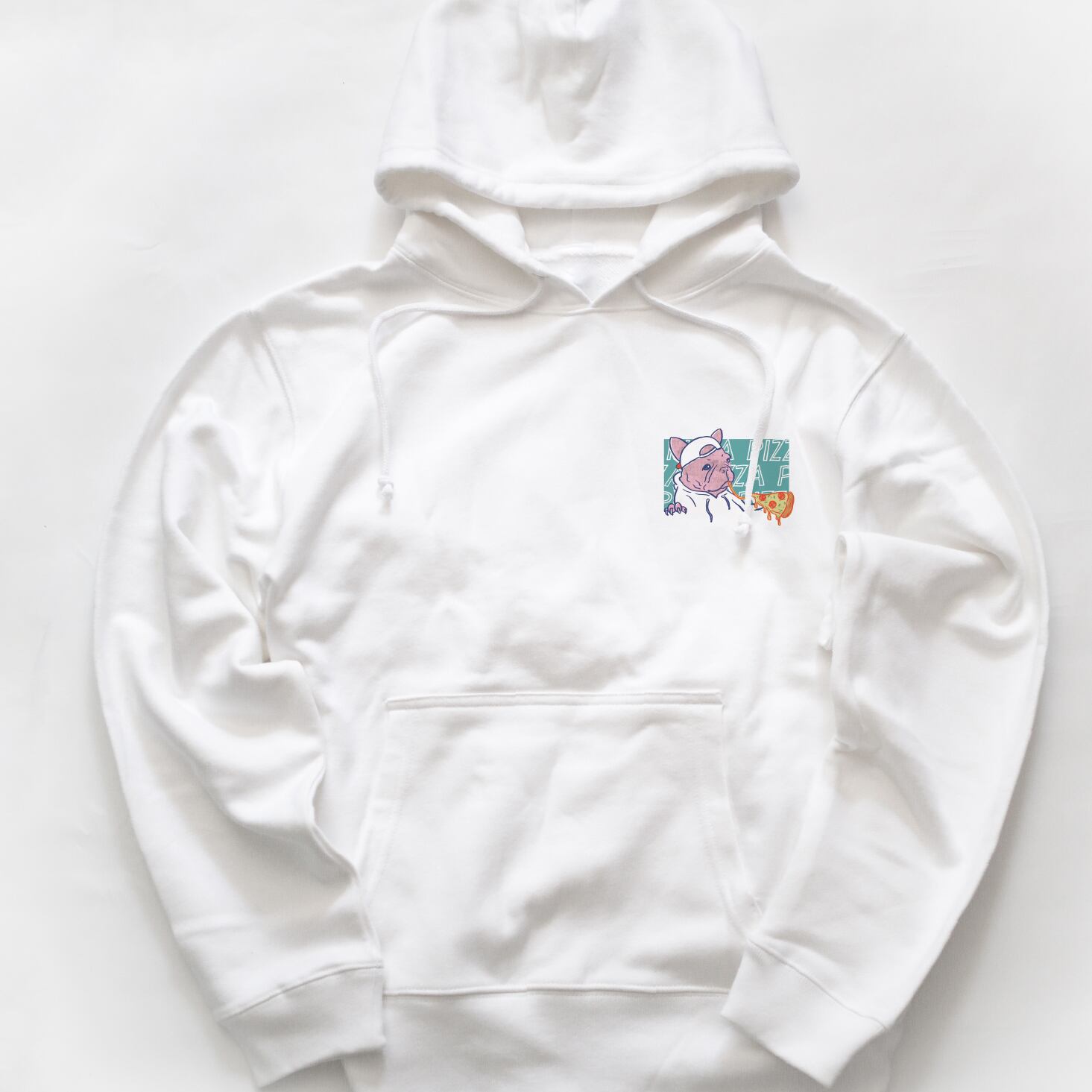 フレンチブルドッグがピザを食べてるパーカーです♪
