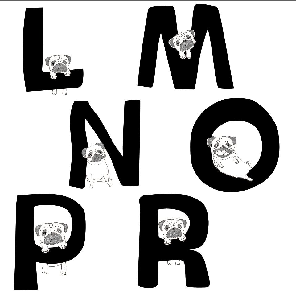 【入園・入学セット】【名前入り】巾着 パグ アルファベット メッセージ 体操服入れ 給食ナプキン