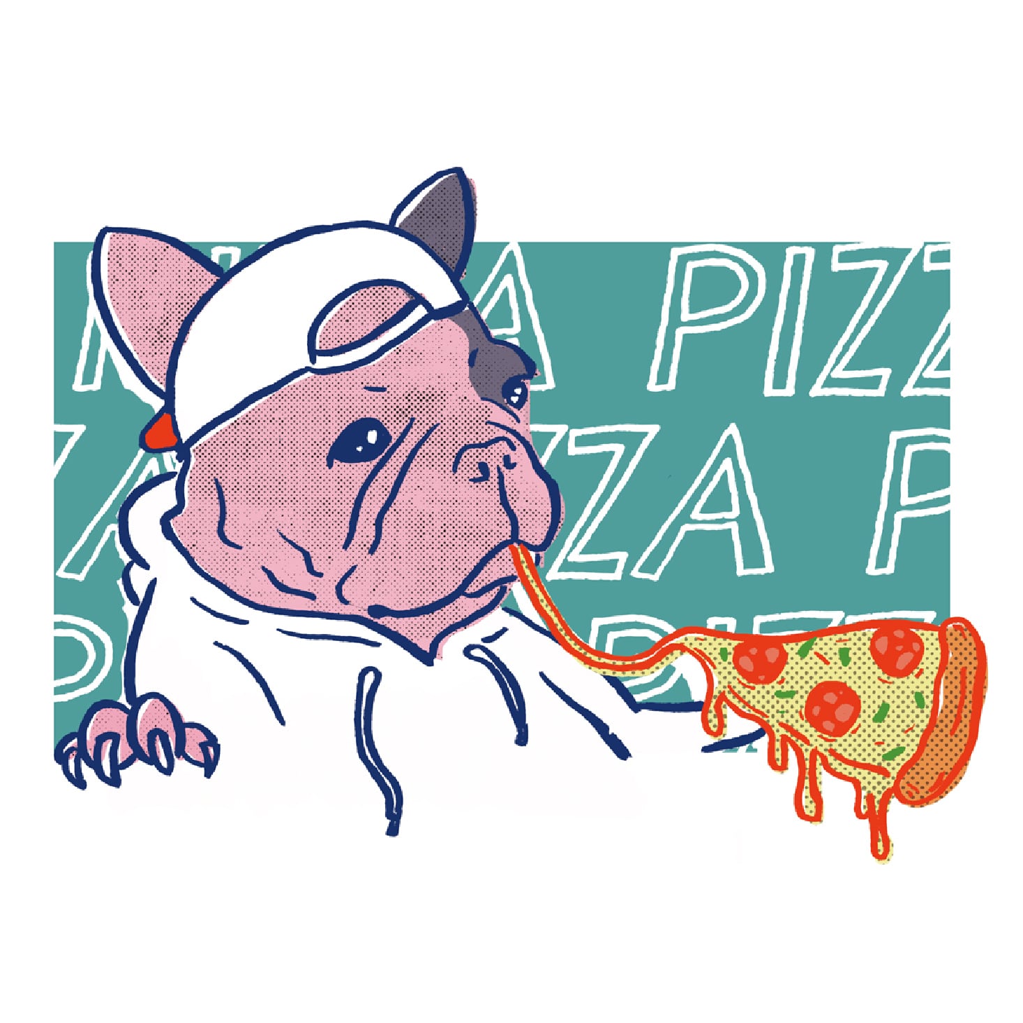 フレンチブルドッグがピザを食べてるクルーネックスウエットです♪