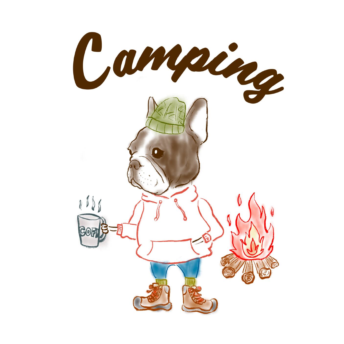 キャンプしているフレブルのイラストが入ったパーカーです♪